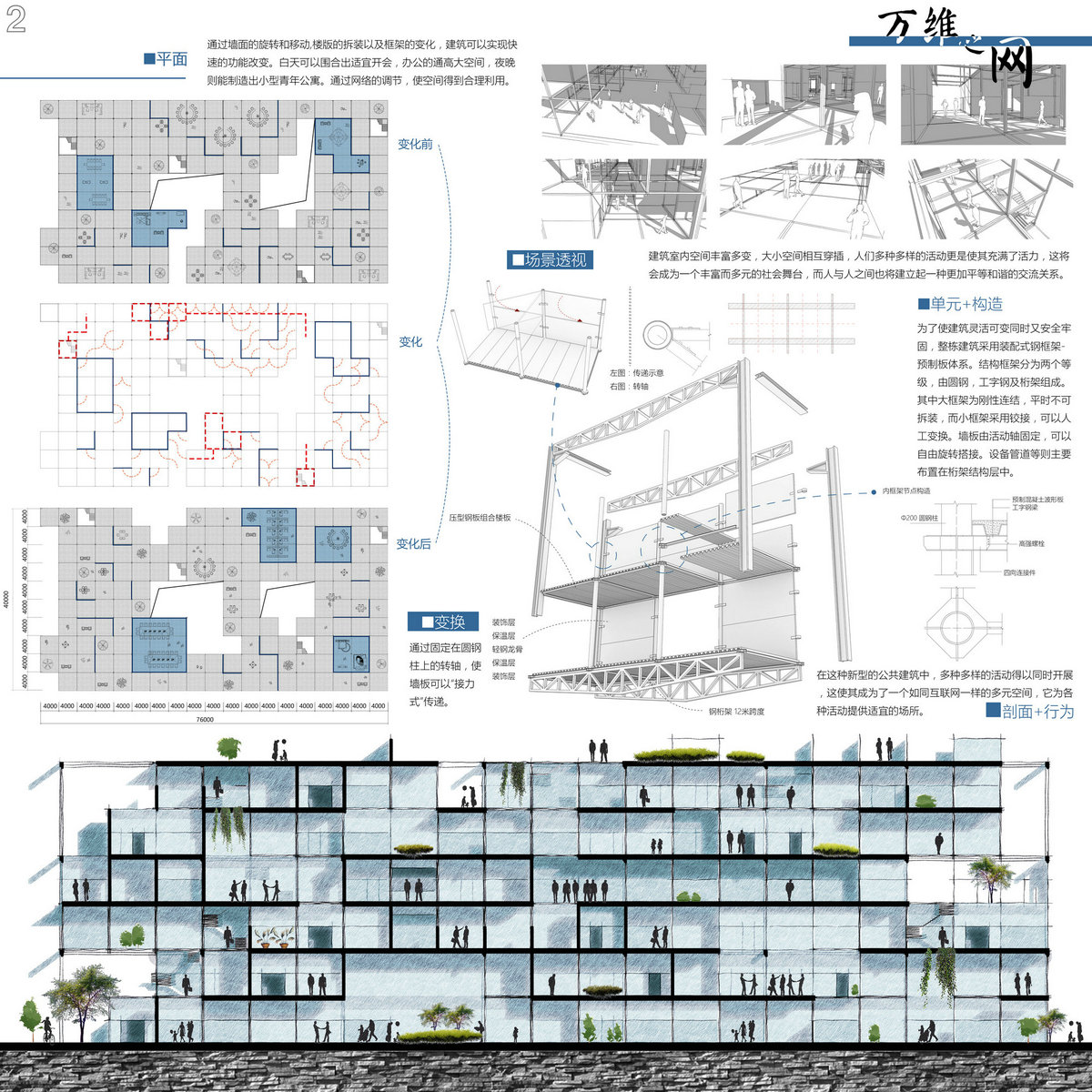 “万维之网”作为一种新型公共建筑,通过自身模块的重组形成多种公共空间,承担更多的社会功能,解决更多的社会问题,实现高效合理利用空间的公共综合体。